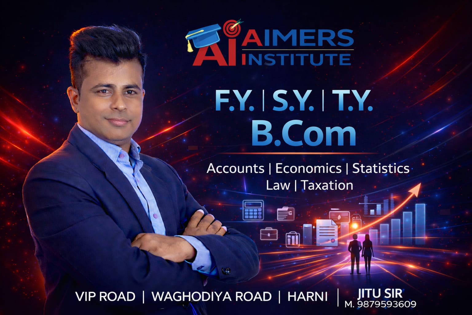 We specialise in 11–12 Commerce (GSEB & CBSE) and B.Com (F.Y., S.Y., T.Y.) for M.S. University, blending conceptual clarity with practical business skills so every student can excel in academics and the industry.